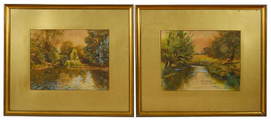 heightened with body colour showing the ripples on the water, signed F Osborne lower right, in gilt frames (2)
