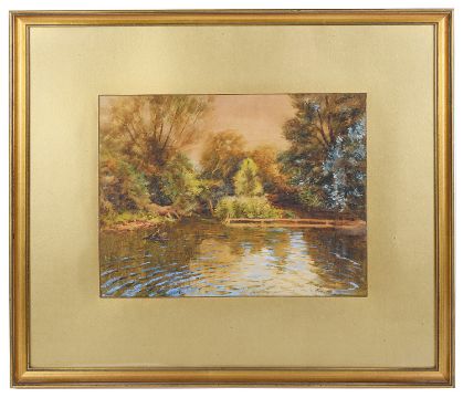 Condition: Fair to good, with wear to frame, one frame joints loose, watercolours are good, dirt on mount