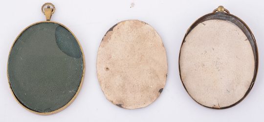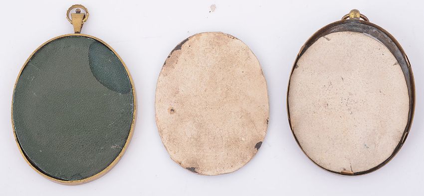 all dressed in coats with tied cravats, watercolour on ivory, oval, two in gilt frames, one loose (3)