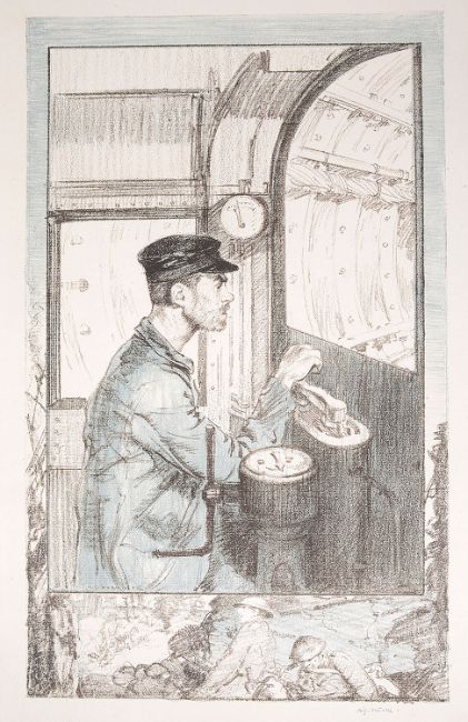 A series of twelve colour lithographs on laid paper commissioned by the London Underground Electric Railway Company, each signed in pencil by the artist, comprising: Lift Girl, Lorry-body Maker, Shell Turners, Bus Driver, Women Fitters, Gatewoman, Bus Conductor, Signal man, Women Painters, Plate layers, Ticket Collector and Motorman, with title page in printed paper wrappers signed by the artist in ink and dated 18.Xii.1918