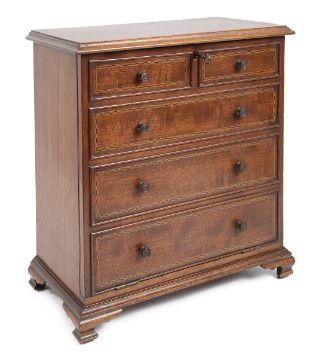 An Edwardian mahogany tabletop stationary cabinet in the form a miniature George III chest of drawers