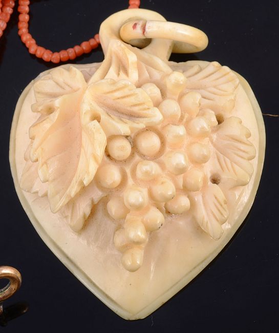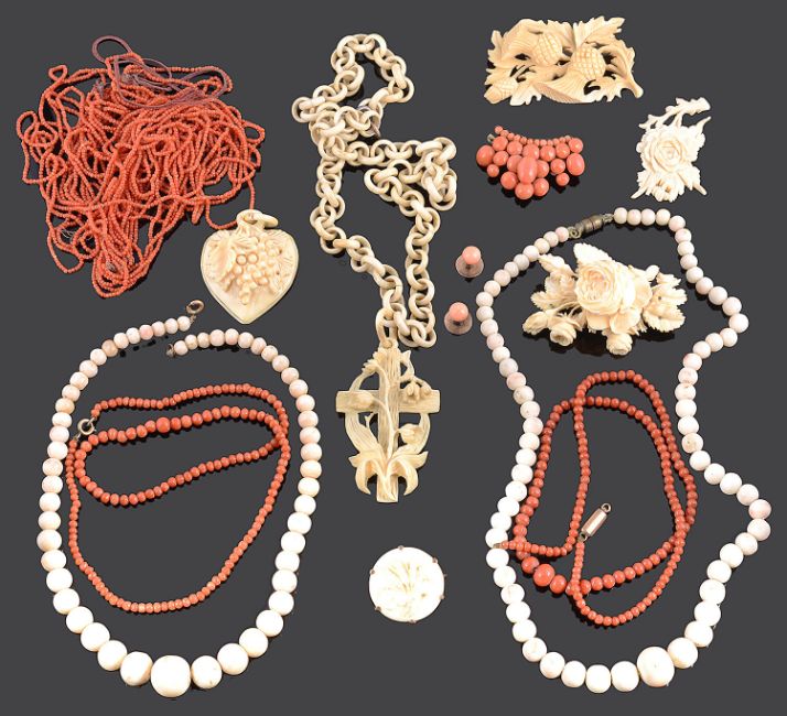 A collection of Victorian coral and carved ivory jewellery
