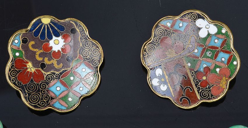 Condition: Recommend view in person, Canton brooches one heavily rubbed, the other a.f.