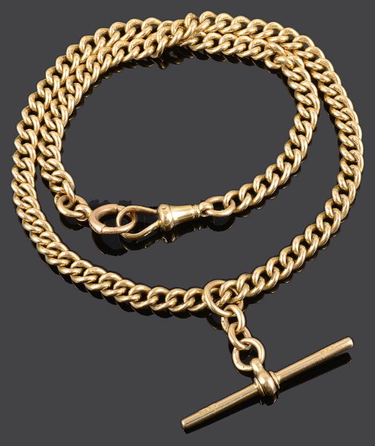 each link stamped 18ct and with crown, clip and 'T' bar marked, 'T' bar with maker's stamp E.C
