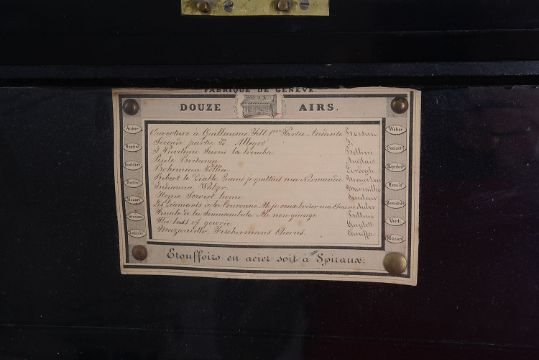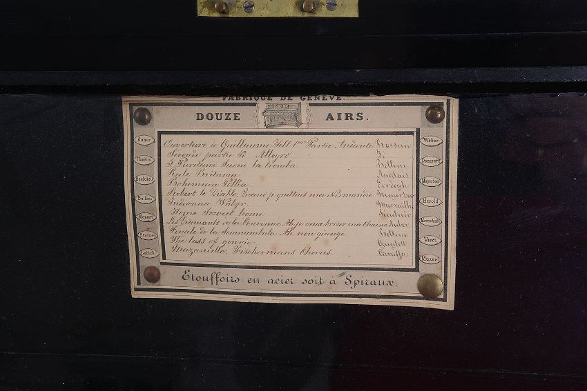 No 8761, the 33.5cm cylinder playing twelve overtures as listed on the tune sheet, with lever wind and three control levers, contained within a rosewood case within carrying handles