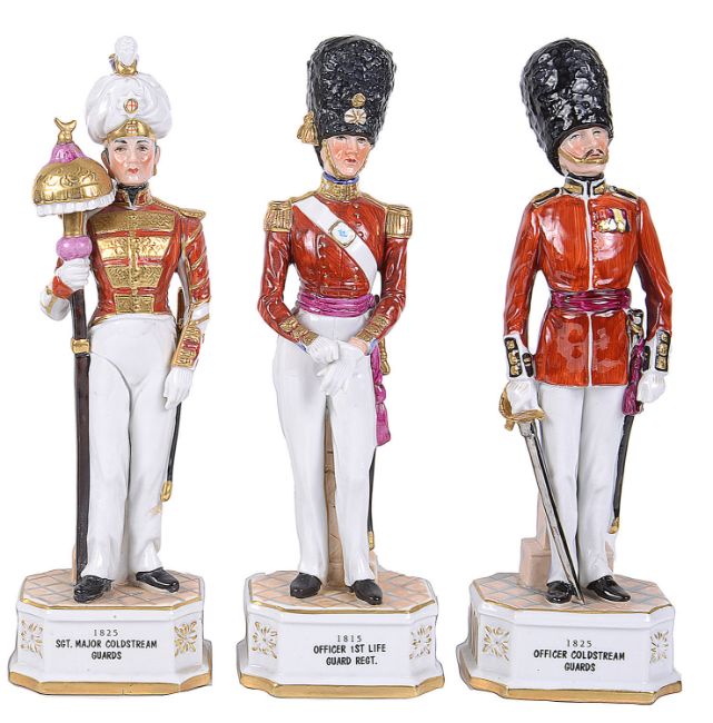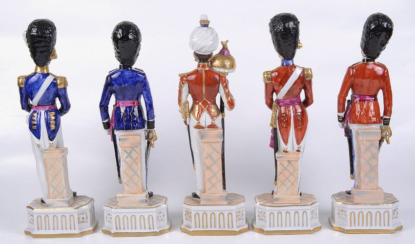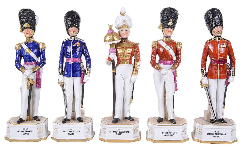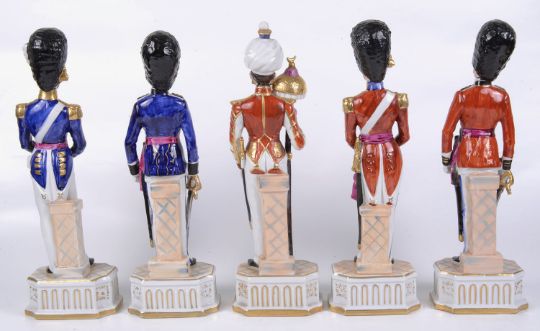 Five German porcelain figures of soldiers