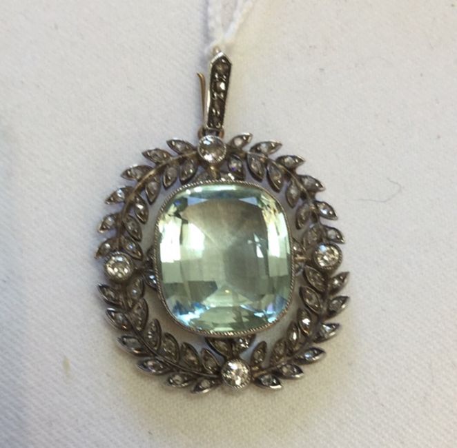 An attractive Belle Epoch pale tourmaline and rose diamond set brooch/pendant
