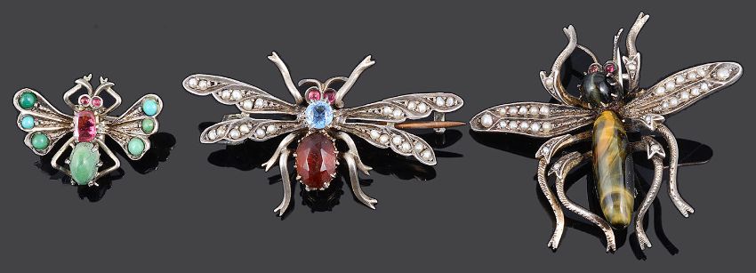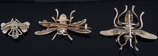 Three early 20th Century Continental 'bug' brooches