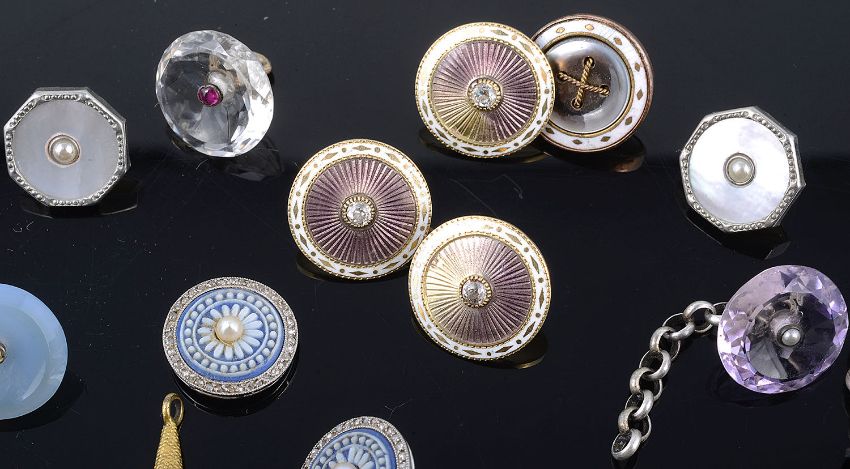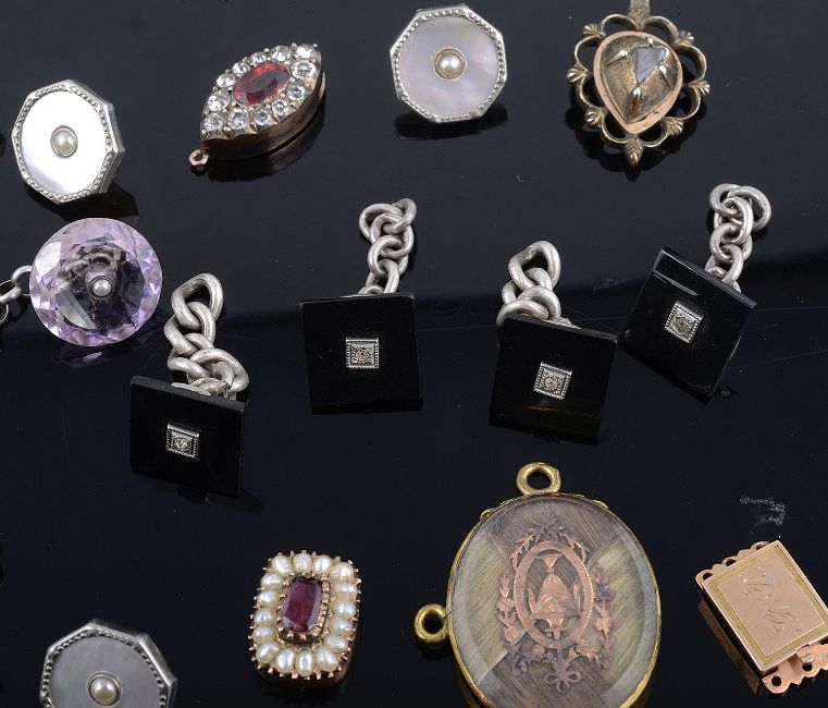 An interesting collection of Georgian and later, diamond set and other buttons, pendants, clasps etc...
