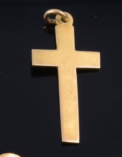 wreath brooch diameter approx. 2.2 cm., sovereign pendant frame approx. 4 x 4.3 cm., total weight approx. 15.1g