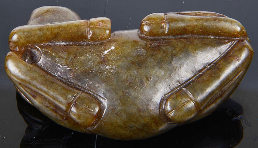 A contemporary Chinese spinach jade carving of a recumbent buffalo