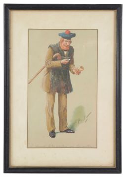 A humorous cartoon of a miserly Scotsman, entitled in pencil, 'I dinna' like partin' wi' the siller!', watercolour, signed, mounted, framed