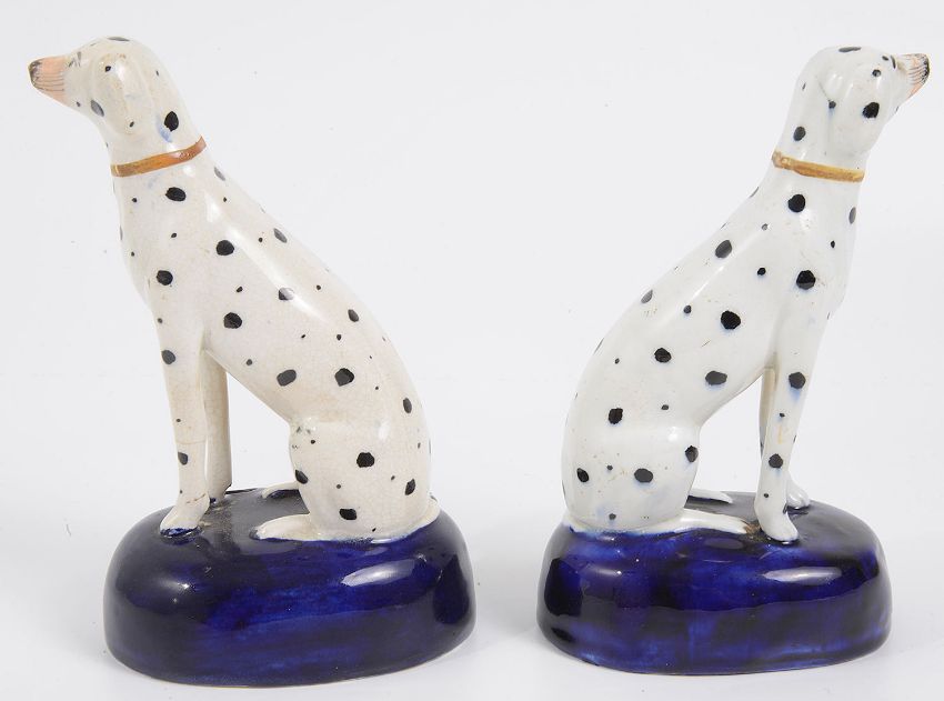 Condition: Crazing to both Dalmatians, stable hairline running through back front leg of left Dalmatian, otherwise in good condition