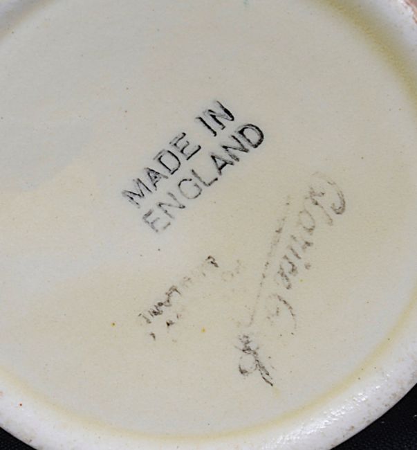 Condition: Farmhouse preserve cover probably matched and with restored bee finial, other two jars in good condition overall with minor wear and light staining to floral example