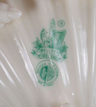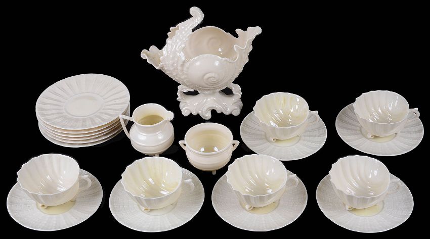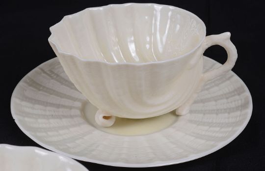 A set of six Belleek porcelain 'Neptune' pattern tea cups and saucers and plates