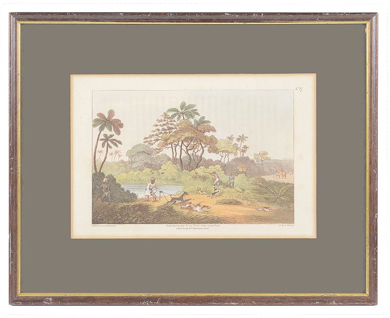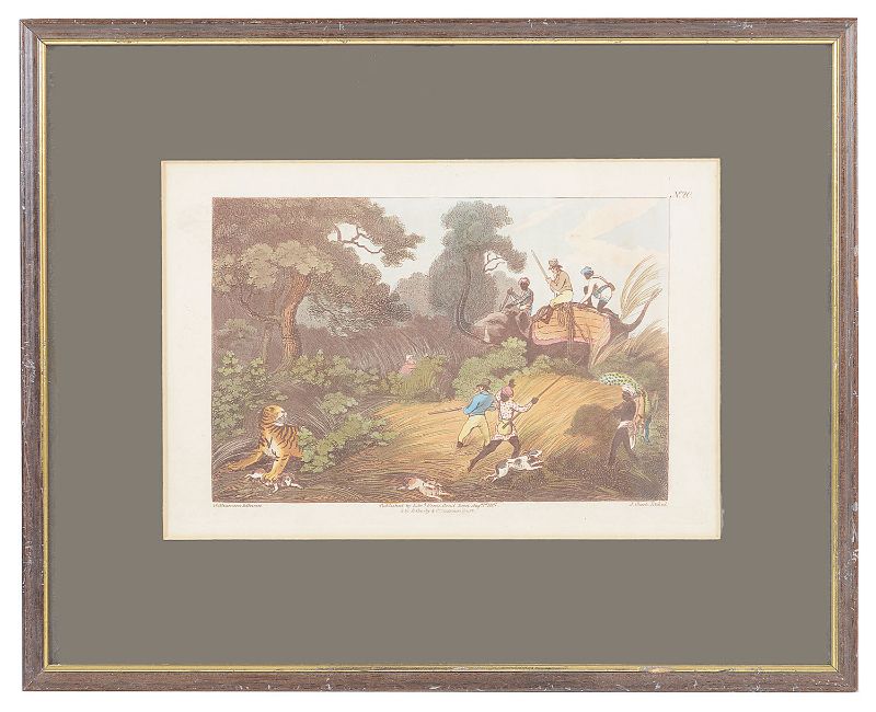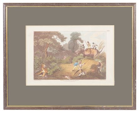 etched by J. Clarke No 20. 'Tiger Hunting', No.23. 'Leopard hunting', No. 27 'Wildfowling', aquatints, published by Edward Orme Bond Street Aug'st 1st 1807, mounted, framed, (3)