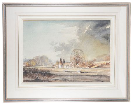 'Winter Kent landscape with oasts', watercolour, signed, mounted, framed