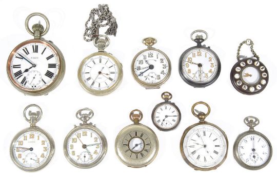 A collection of eleven mostly open faced pocket watches