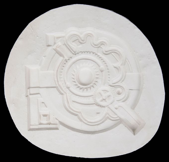'Untitled', a plaster cast relief cast of a composition of gear wheels and machine parts, unsigned.