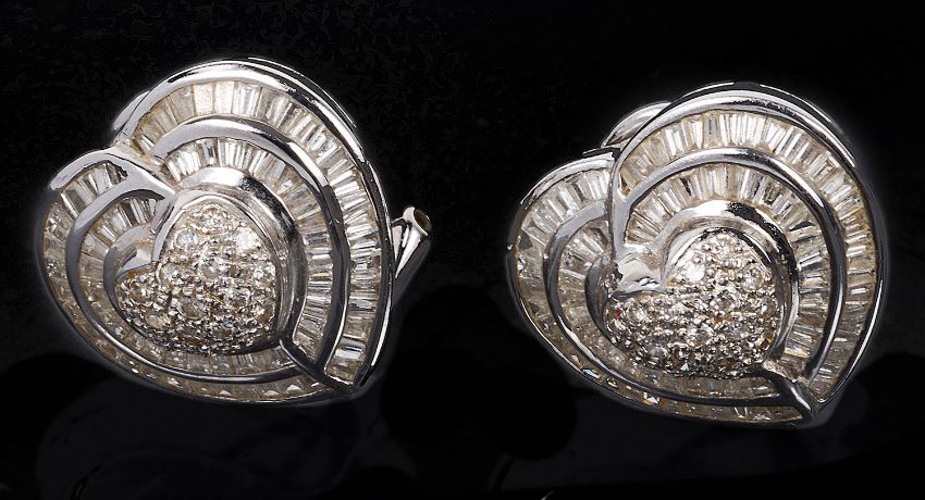 A pair of large Continental diamond set heart shaped earrings