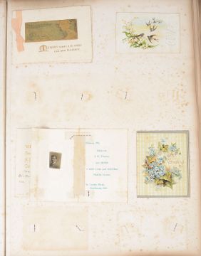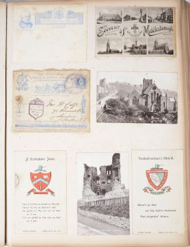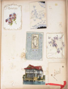 A late Victorian album of Christmas cards, greetings cards, postcards and cabinet photographs