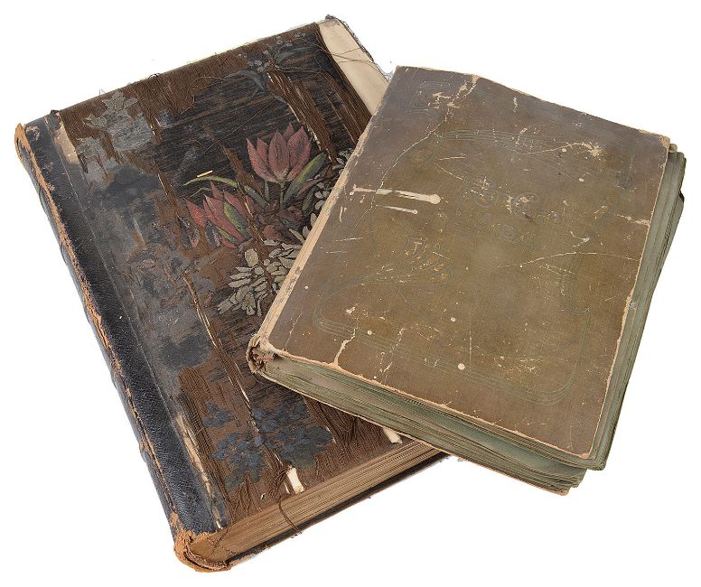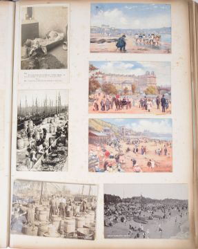 Condition: Album as ;ight spotting throughout, contents stuck down. Fabric covered boards distressed. Edwardian album with some loses pages,