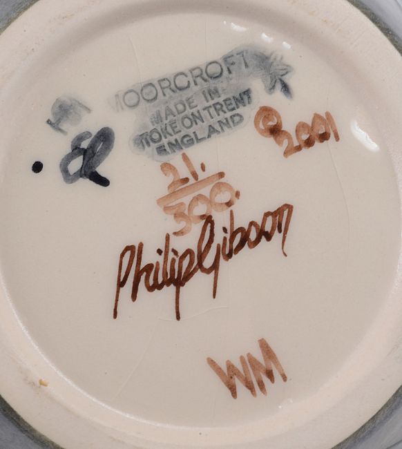 of ovoid form, tube lined decoration against a fading grey ground, impressed marks, dated 2001 and signed in brown
