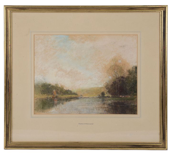 'River view', pastel, signed, mounted, framed