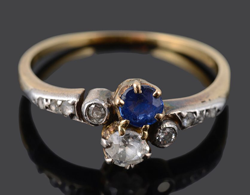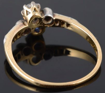 A delicate Edwardian sapphire and diamond set cross over ring