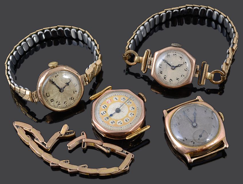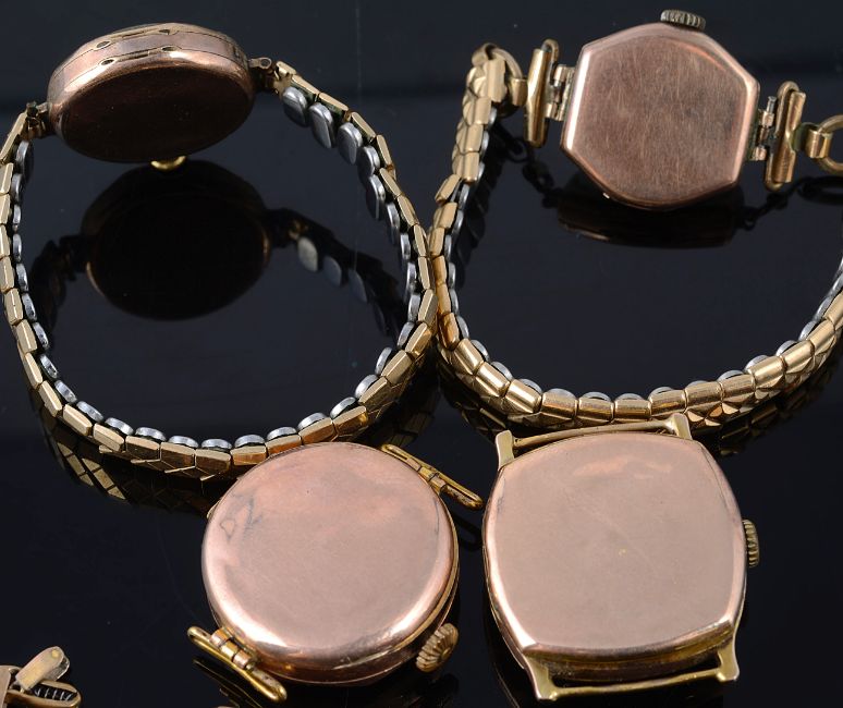 A 1920s Ladies 9ct gold Rolex wristwatch and three other 9ct gold wristwatches