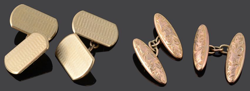 A pair of Art Deco 9ct gold cufflinks and another pair of 9ct gold cufflinks