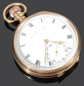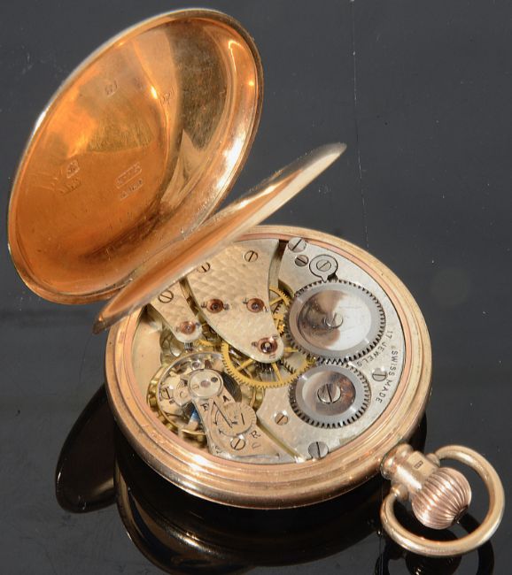 marked for Birmingham, 1928, the circular white enamel dial with Roman numerals minute track and subsidiary seconds dial, signed "Bravingtons Renown", 17 jewels Swiss made, interior stamped Dennison, numbered 415257