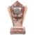 the pink enamel dial with black arabic numerals and minute track signed Louis Leleu, Le Havre, the 8 day drum movement striking on a bell, numbered 916 and stamped F. Marti, the case with gilt metal mounts on a stepped plinth base