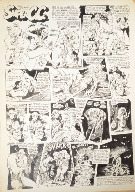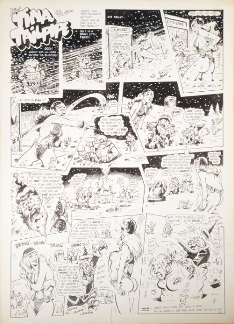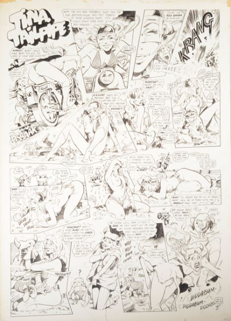 'Tina Tailpipe' from SuperBike Magazine, No. 32 'Santa', No. 35 'Cow Skin', No. 50., '50th Issue July', together with Super C.C. for Custom Car Magazine, 'No. 16', 'No. 63' and 'No. 118 The sewer Part No.1', original cartoons, pen and ink, signed, (6)