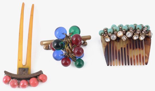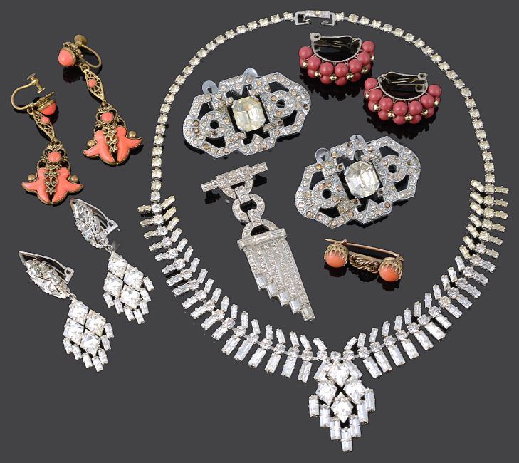 Condition: Overall good for coral brooch, overall good for remaining items, some pastes absent