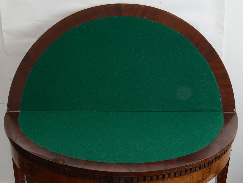 A late 18th century Dutch mahogany demi-lune card table