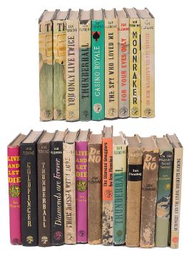 You Only Live Twice, 1964, d.w., The Man with the Golden Gun, 1965, d.w. x2; Casino Royal, 1960, d.w. For Your Eyes Only, 1960 second Impression, d.w.; Live and Let Die, 1960, The Spy who Loved Me, 1962 third Impression, d.w., Moonraker, 1959, d.w., The Diamond Smugglers, 1957, second impression; Goldfinger, 1960, third impression, no d.w. and nine other titles including four Book Club editions and three ex library copies, (22)