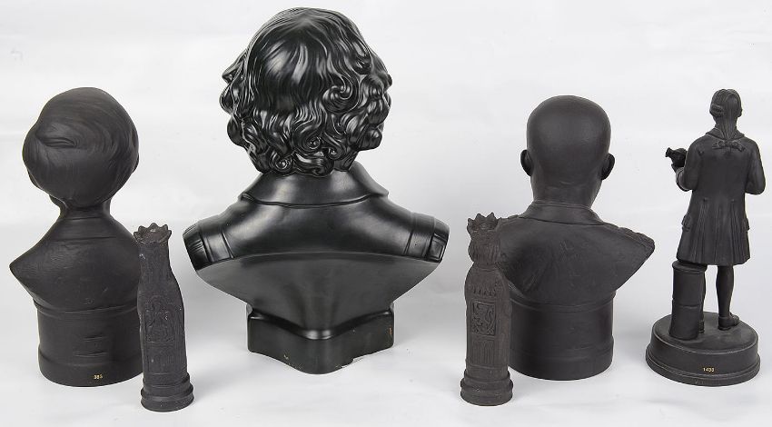 comprising three busts: Shakespeare, Abraham Lincoln President of the United States 1861-1865, numbered 383, and Dwight D. Eisenhower President of the United States 1853-1861, together with a figure of Josiah Wedgwood FRS 1730-1795, numbered 1438 and King and Queen chess pieces, (8)