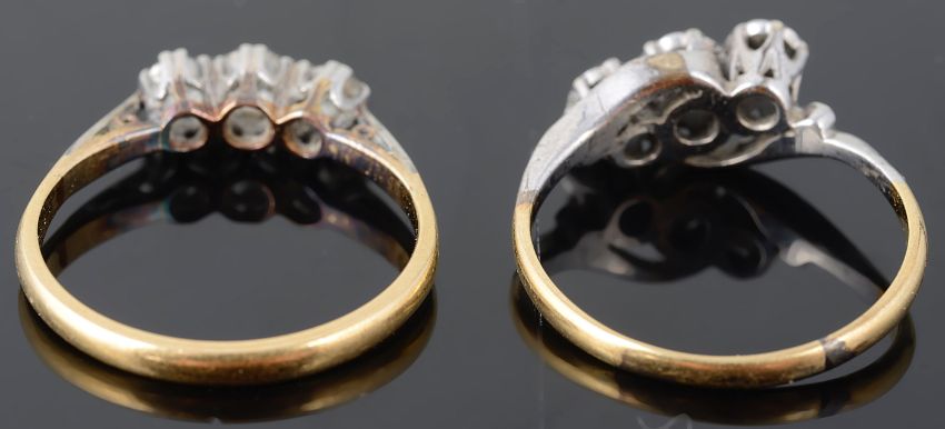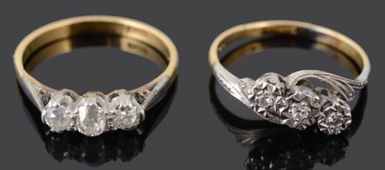 Two three stone diamond set rings