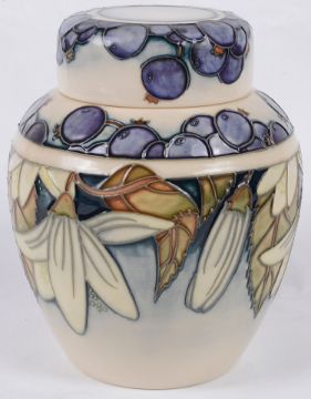 A modern Moorcroft Pottery 'Juneberry' ginger jar and cover designed by Anjie Davenport