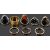 Condition: 18ct gold band and amber ring both overall good, 9ct bands substantial wear