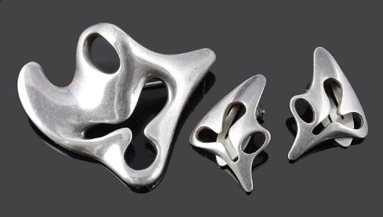 A Georg Jensen 'Amobea' brooch and earrings by Henning Koppel