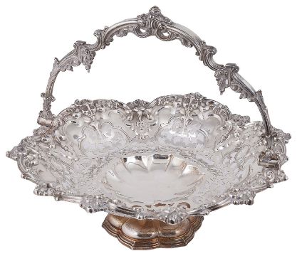 An early Victorian silver swing handled cake basket