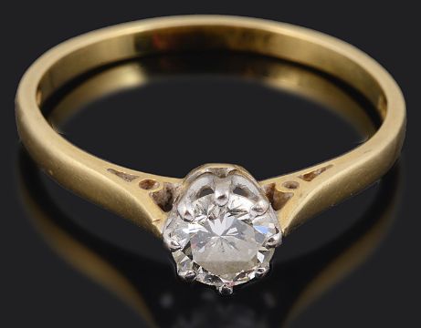 the stone approximately 0.45 carats and set in 18ct gold mount, maker's mark K.C.
