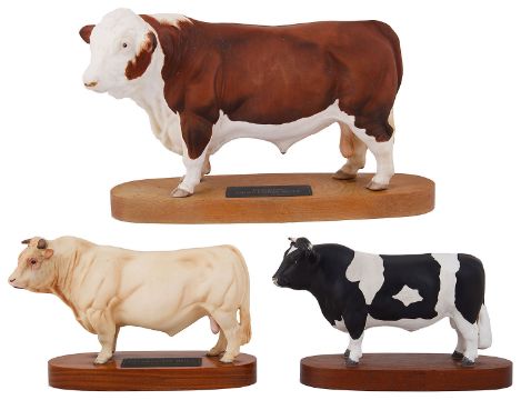 A Beswick Connoisseur Polled Hereford Bull on a wooden plinth and two others