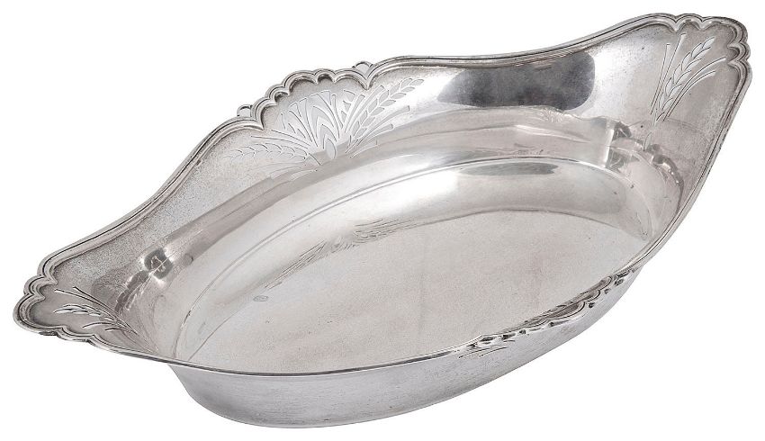 of oblong form, the flared sides pierced with wheat ears, having a shaped moulded rim