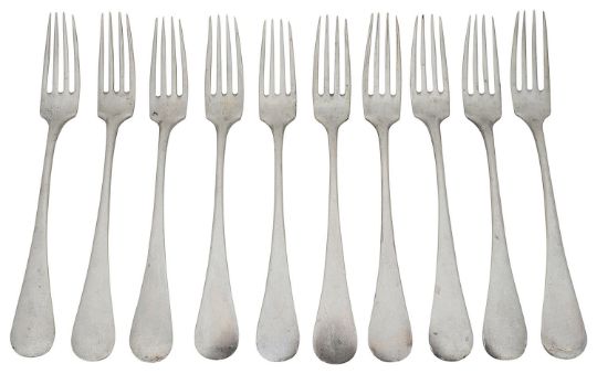 A set of ten early 20th century Italian .800 silver table forks
