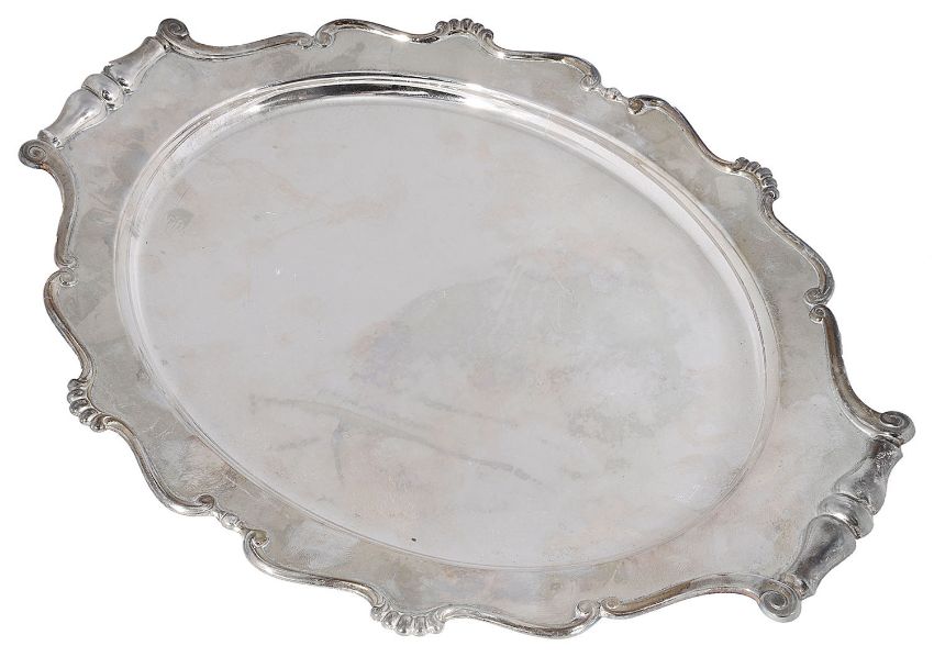 An early 20th century Italian .800 silver oval twin handled tray