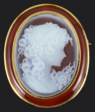 An attractive contemporary carved hardstone cameo portrait pendant brooch