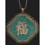 A large Chinese green hardstone character pendant on chain